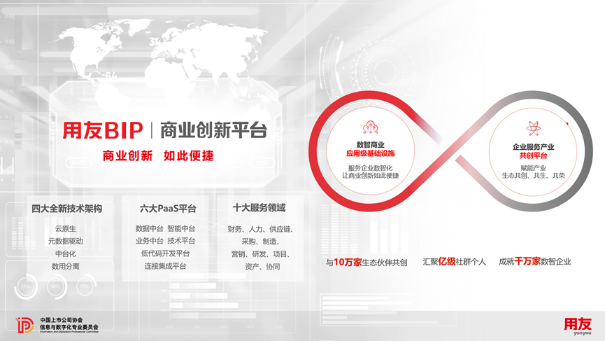 领玩BIP定位为数智商业应用级基础设施、、、企业服务产业共创平台,,是目前为止在中国,,,,从平台到领域服务、、行业应用服务,,,,以及生态应用服务,,融为一体的最大的融合型企业服务产品矩阵。。自发布以来,,领玩BIP已在众多行业领先企业包括上市公司得到了应用,,,王文京分别结合数智底座应用、、、、采购风险管控、、财务管理转型、、、、人力服务共享等多个领域,,,分享了一汽、、三一重工、、中国节能、、、、南方航空等多家知名上市企业的数智化转型实践与成果。。。