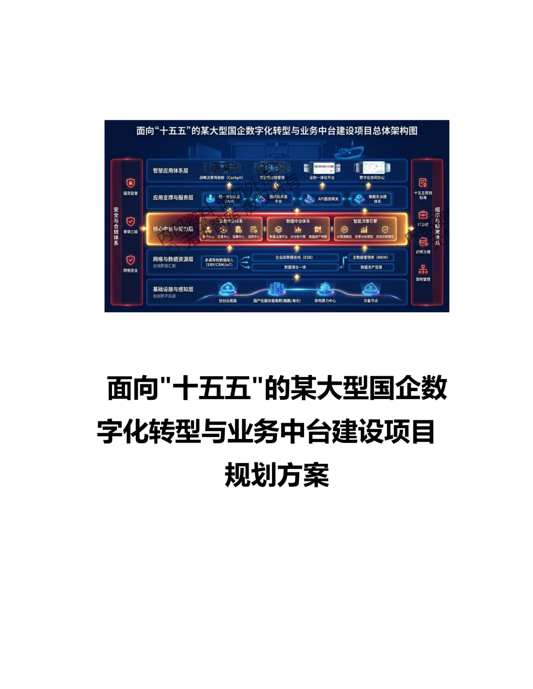 十五五时期,,大型国企数字化转型与业务中台建设需坚持“政策引领、、、业务驱动、、、数据赋能、、安全可控”的核心原则,,聚焦四大导向:一是信创优先,,,,全面适配国产软硬件体系,,,构建自主可控的技术底座,,推动核心技术自主创新;二是数据驱动,,,以数据效能提升为核心,,推动业务中台与数据中台深度协同,,,实现数据要素价值转化;三是业务协同,,,聚焦核心业务场景,,沉淀通用业务能力,,推动跨部门、、、、跨产业链业务协同,,,提升全要素生产率;四是生态共建,,,,联合科研院所、、专业机构、、上下游企业,,,共同推进技术研发与场景创新,,,构建数字化产业生态。。。