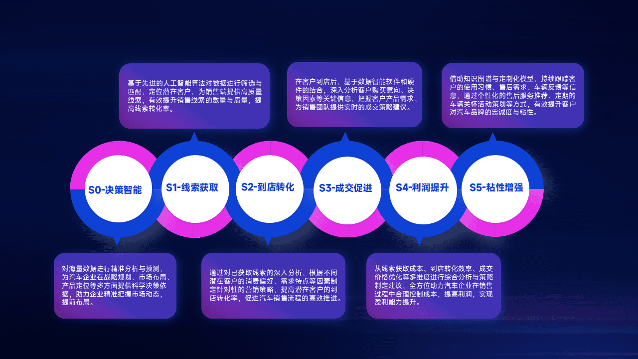 通过拓宽潜在客户来源、、、优化线索分配并提高到店转化率,,,,以增强销售效率。。。同时,,利用线索数据不断优化分析模型,,,有效提升转化率,,,扩大营销影响力。。